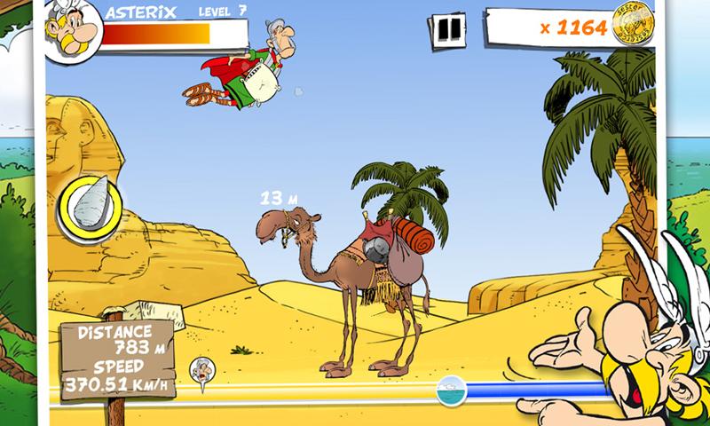 Unlock more than 20 objects (helmet, cloak, helium, etc.) and characters (Obelix, Dogmatix and other legionaries) which will help send your Roman further and further away.