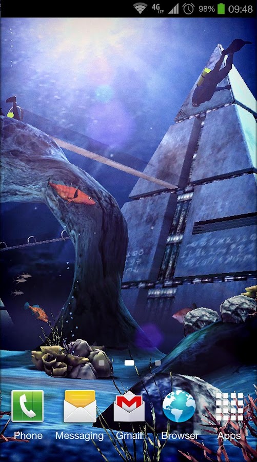 Installation: The main screen (long press) → Live Wallpaper → Atlantis 3d Pro