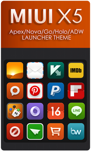 MIUI X5 HD Theme for Apex Launcher, Nova Launcher, ADW Launcher, Holo Launcher, Go Launcher, Atom Launcher and many other Launcher.!