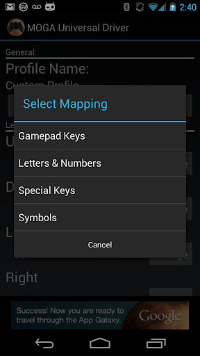 This application provides a virtual keyboard that simulates key presses when you use your MOGA controller. You can map any button or joystick on your MOGA to a key using profiles that are exportable in XML format for you to share with your friends.