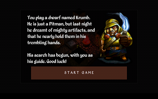 You are Krumb, a dwarven pitman with the quest for mighty artifacts. On your journey through mysterious mines, swamps and dungeons you will encounter many dangerous enemies, from the malicious cave goblins to the enormous trolls. Drink from health fountains, open treasure chests, collect a wide range of food, weapons and magical items and use them wisely - to eventually stand your ground against the perils that await you!Initially made for the "Seven Day Roguelike Challenge" the game got a complete overhaul.