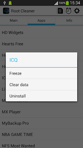 You can choose between quick cleaning and full cleaning. Quick cleaning clears your memory, file cache, etc. and you can do that without reboot. Full cleaning requires reboot, but it makes really total maintenance of your system. Full cleaning is also great when you want to flash other ROM or kernel, so it will clean your device to prevent any problem. Application is also great application manager, you can uninstall, clear data and freeze or unfreeze your system and non-system applications.