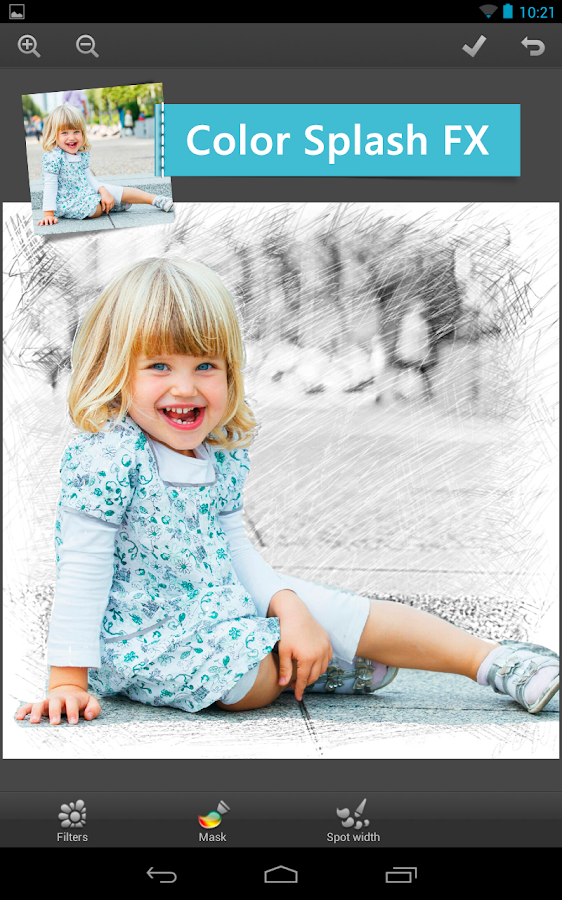 - Color Splash editor: create stunning artwork with your photos by removing or changing colors.