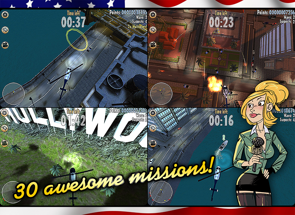 Live the life of Rob, the ultimate badass police officer, who gets things done! Fly his police chopper and use its spotlight to catch criminals on the loose! Bring law and order back to three great American cities – Miami, New York and Los Angeles*! Unveil comic frames drawn by one of the world’s best comic artists and help Rob succeed in his quest to deliver justice!