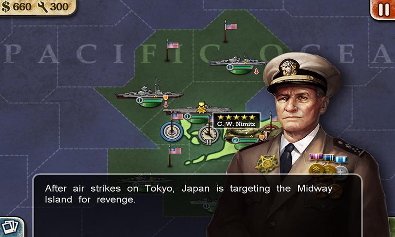 You can fight with or against those famous generals including Guderian, Rommel, Patton, Zhukov, Nimitz, MacArthur, Yamamoto, Montgomery and de Gaulle. It’s so impressive to see their unique tactics and ace forces. Patton and Rommel are well-known for their panzer corps, Nimitz and Yamamoto for their aircraft carrier fleets while Goering and MacArthur for their air forces – all of them are one and only. It’s your choice to be a part of the Axis or Allies in WWII, but only after that can Cold War scenarios be unlocked. As campaigns go on, different equipments of each nation would come on the stage. Germany’s Tiger Tank and the Soviets’ Katyusha Rocket are two of the most powerful weapons, to name but a few. The army can use various supporting tactics including entrenchments, radars, land forts and anti-aircraft guns for more defenses. The navy may get effective marine strength through combination of destroyers, cruisers, battleships and aircraft carriers. Air strikes, strategic bombing, airborne forces or devastating nuclear bombs help the air force to destroy hostile defense lines.