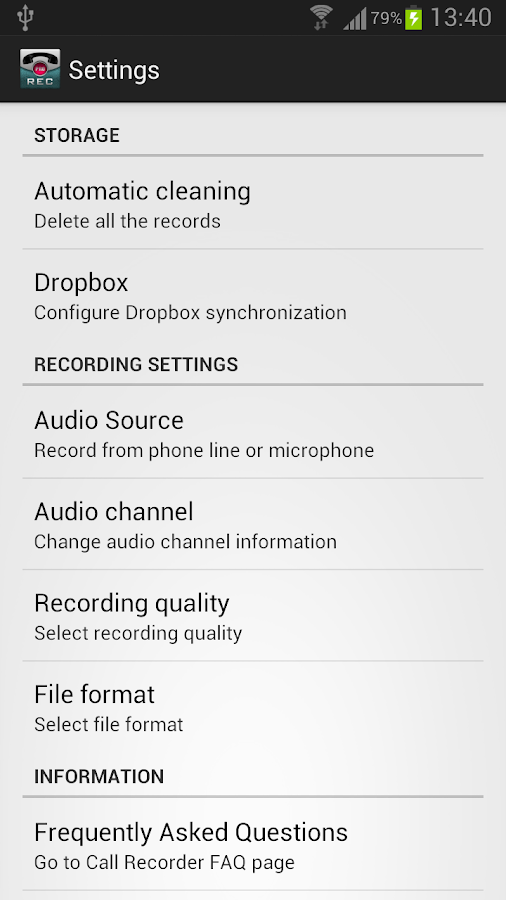- Confirmation dialog: Would you like to keep recorded call that is shown just after the call.
