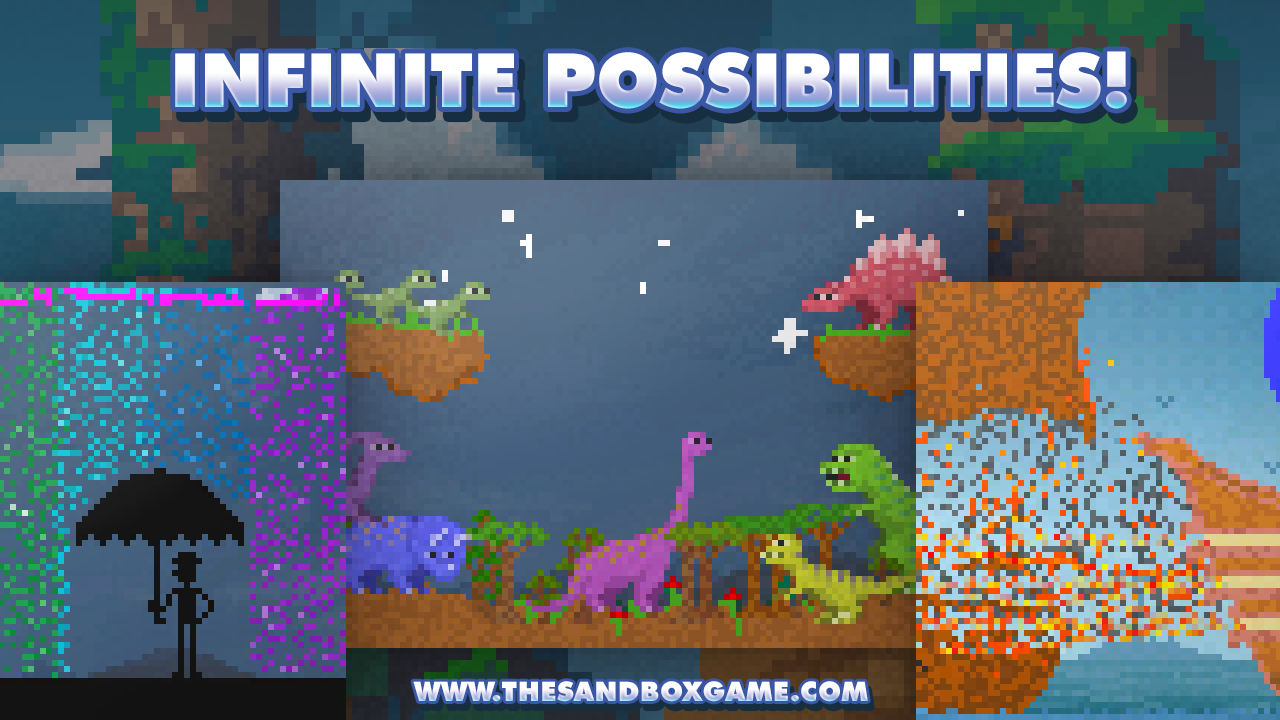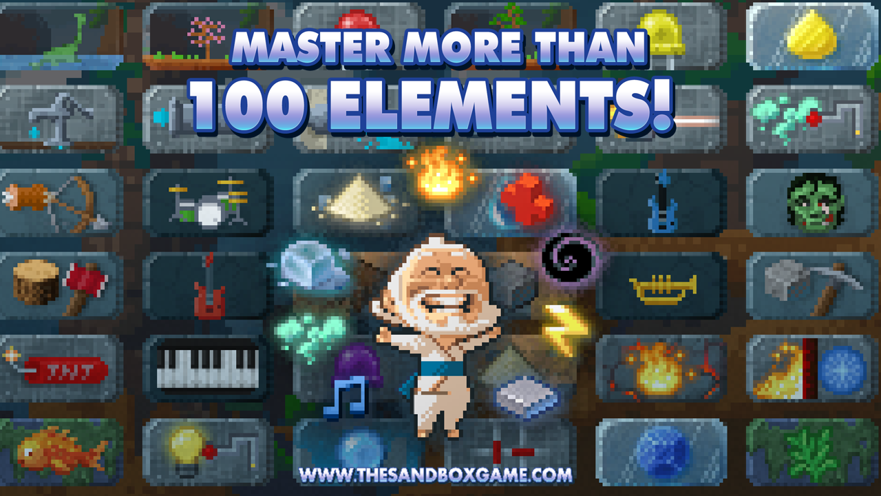 Imagine crafting your own world (complete with amazing Pixel Art), composing your own music, and much, much more. The universe is yours to create or destroy, and the only limit is your imagination! Start from scratch with basic building pixel blocks like stone, water and soil. Once you discover mud and sand, you’re on your way! Grow plants, raise mountains, generate life and gain access to advanced tools for crafting more and more complex elements. Before long, you’ll be able to access non-organic elements like metal and light bulbs, allowing you to populate your universe with creations both natural and technological.
