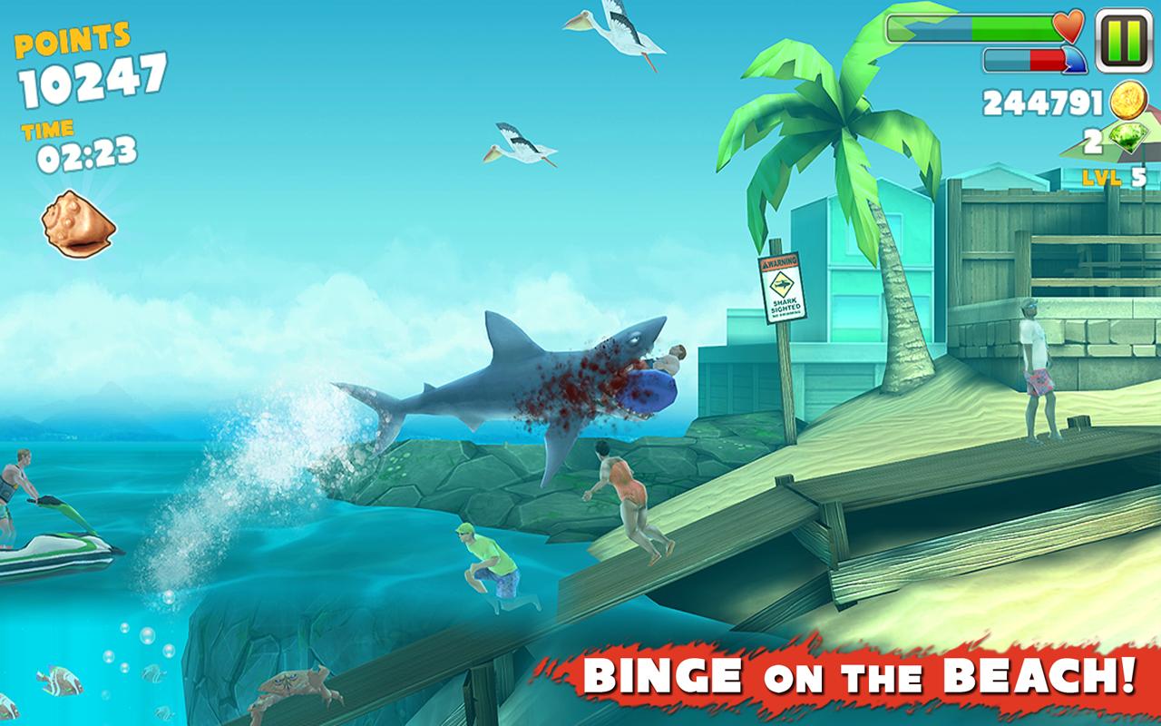 Complete missions and find treasure to earn coins and gems. Spend these rewards on upgrading your sharks abilities or buy special life-saving items. Progress to unlock the most ferocious beasts in the sea: Mako Shark, Hammerhead, Tiger Shark and the almighty Great White