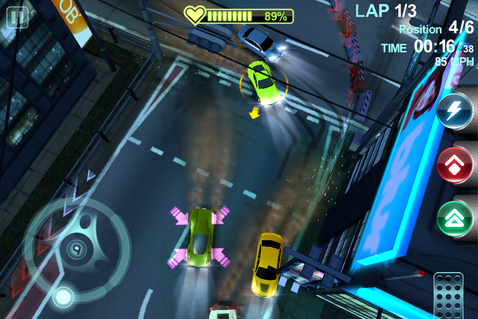 Collect and deploy eight pyrotechnic power-ups to aid your performance and damage rival vehicles. Barge, shock and shield your way to the finish line or use your nitro power-up to leave your opponents behind.