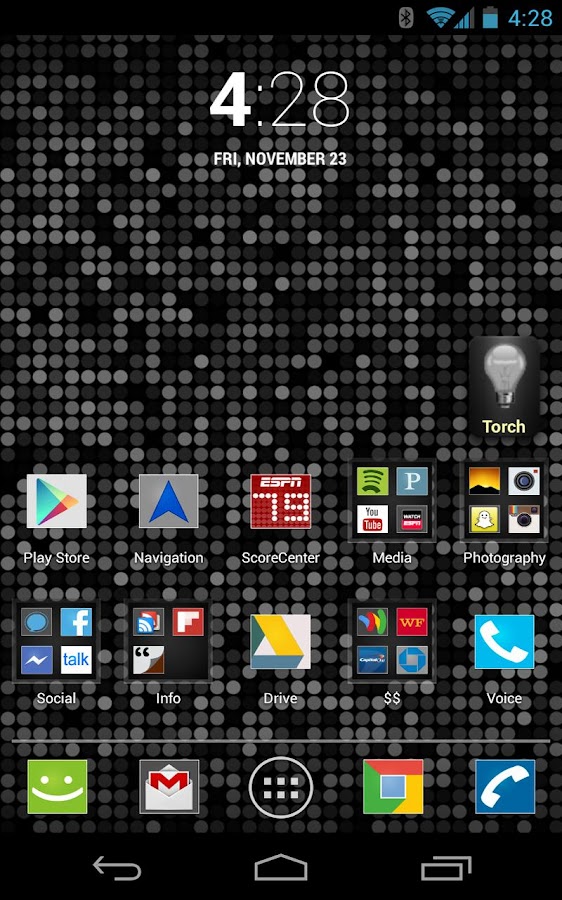 This theme works well with Apex, Nova, ADW, and Go Launchers. It may work with other varying launchers found on the market but has not been tested for compatibility.