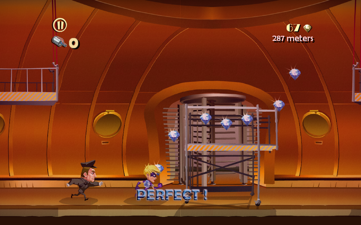 Anyway the goal remains the same: grab a lot of gems running on the longest distance possible while avoiding of getting busted: