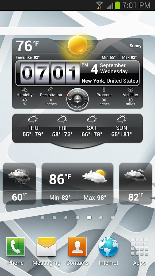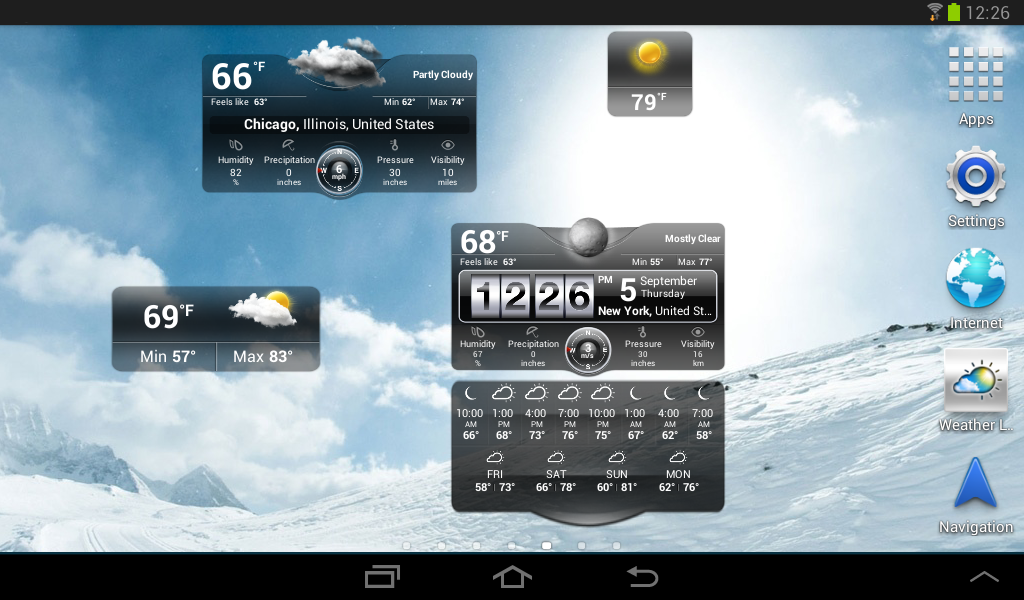 • Customizable layout: all weather details, short-term forecast, long-term forecast, current state only, text only