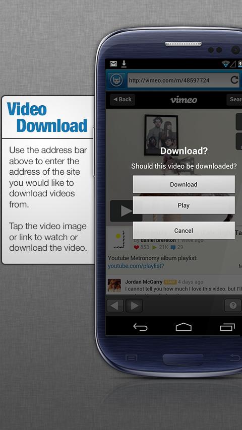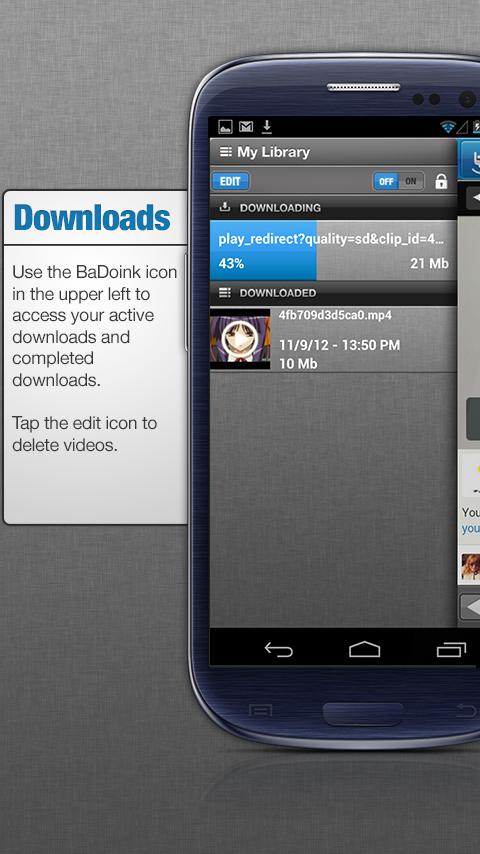 Web Browser – the BaDoink Video Downloader is a full web browser that is optimized for multimedia viewing.
