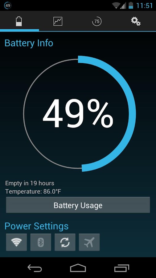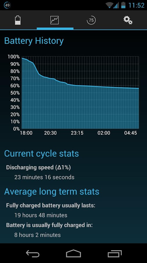 - customizable texts in notification area (estimated time left, voltage, temperature, battery health)