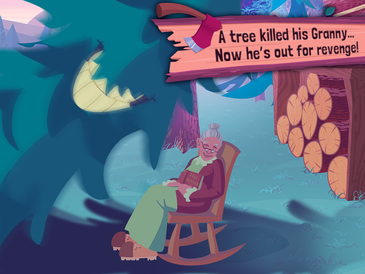 * Chug the blood of your foes; drink Granny's magical syrups to enhance your log-chopping powers.