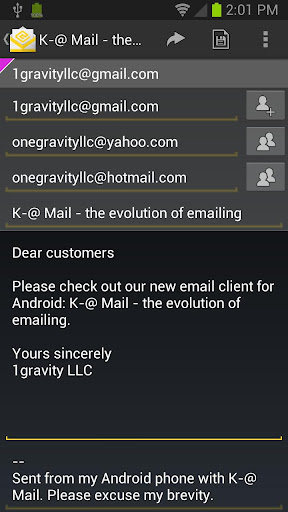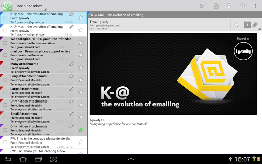 K-@ Mail Pro (Kat Mail Pro), the first and only email client for Android that combines a gorgeous graphical design with great user experience and the power of K-9 “under the hood”.
