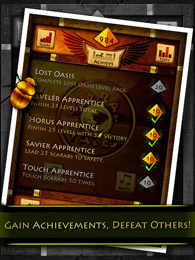 ✓ Lead Scarabs to safety. Touch level elements and the bugs to solve the puzzle.