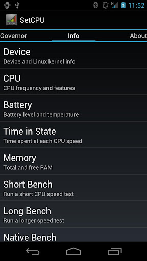 SetCPU works with a great variety of Android devices and ROMs, including the HTC One series, Samsung Galaxy series, and Nexus devices. You're under control: SetCPU can improve your performance, save battery, or both!