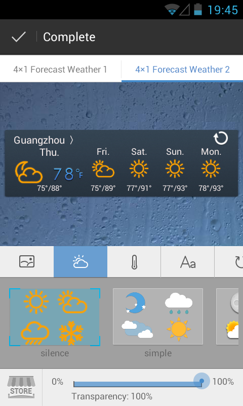 - 4*1, 4*2 Today weather widget & 4*1 future weather widget available