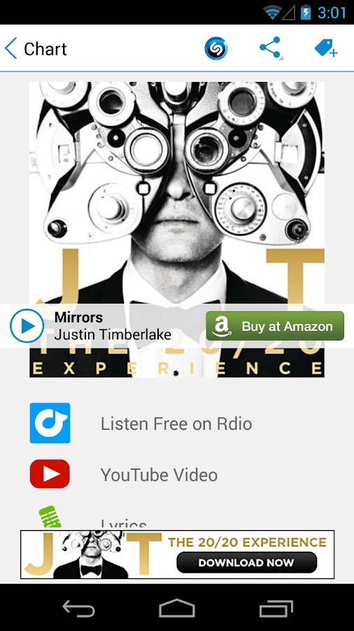 Music - identify songs in as little as 1 second, preview or buy the track, get streaming lyrics, YouTube videos and more. TV - US fans, tag TV shows ANYTIME for music, celebrity buzz, trivia and more. Every channel. Every show.