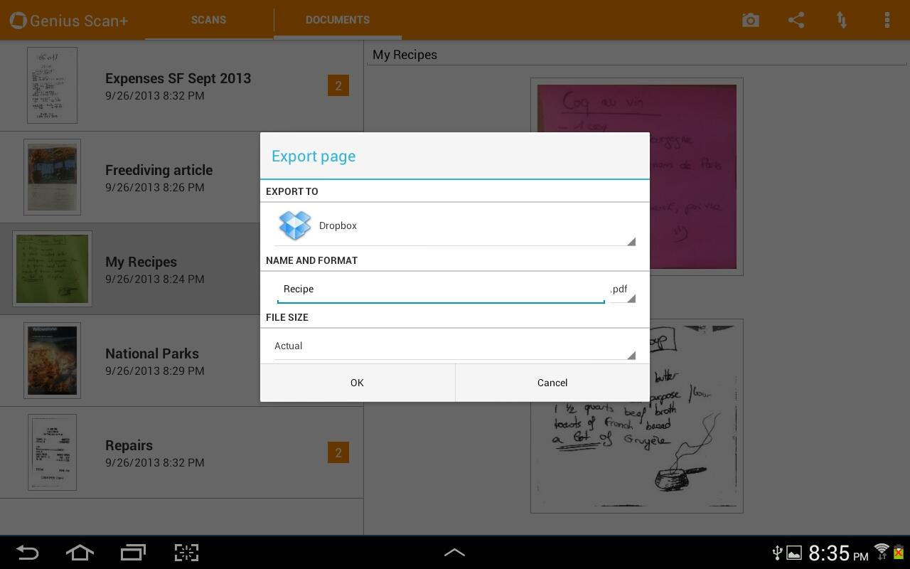 In addition, Genius Scan+ integrates with Box, Dropbox, Evernote or any other cloud service app installed on your Android phone to let you export your scans wherever you want.