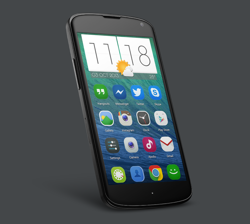 Support XXHDPI devices ( One, S4, ...) and fully support - you can set 130% icon size with XHDPI devices ( One X, S3 ,...)If your icons missing, send me request and i will make it asap